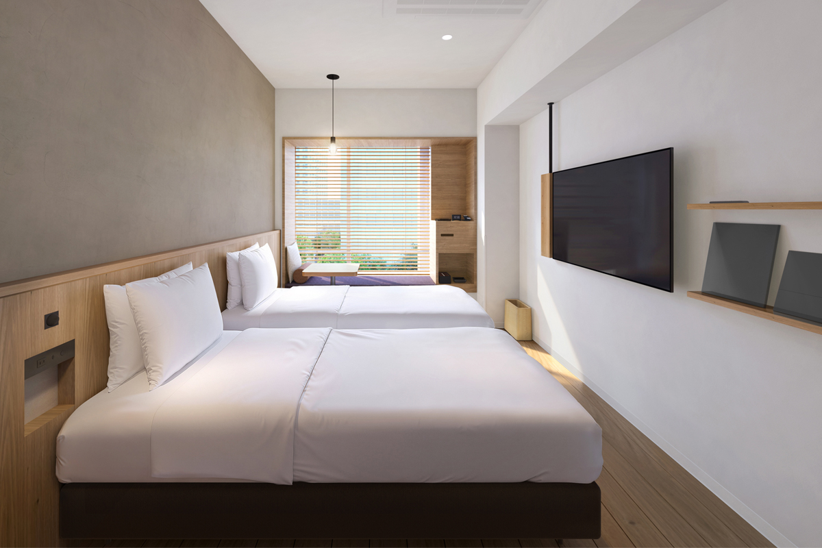 | Room features | Kitchenette(no stove), Shower, Wash basin, Individual air conditioning, Wi-Fi, Washlet bidet toilet, Nihon Bed(luxury hotel bed brand), Microwave, Fridge-freezer, Electric kettle, Phone, Safety box, 50-inch LCD Smart TV, Air purifier with humidifier |