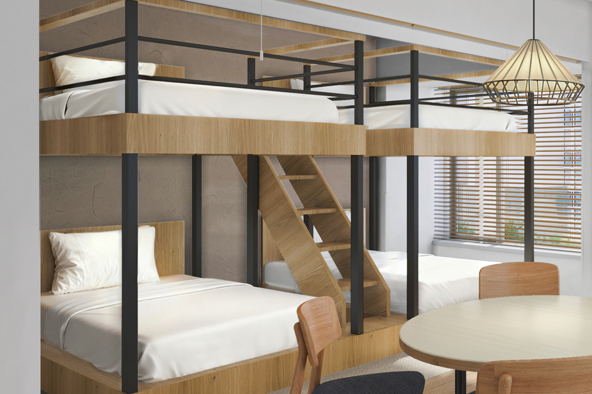 | Room features | Kitchenette(no stove), Bath, Shower, Wash basin, Individual air conditioning, Wi-Fi, Washlet bidet toilet, Nihon Bed(luxury hotel bed brand), Microwave, Fridge-freezer, Electric kettle, Phone, Safety box, 50-inch LCD Smart TV, Air purifier with humidifier |