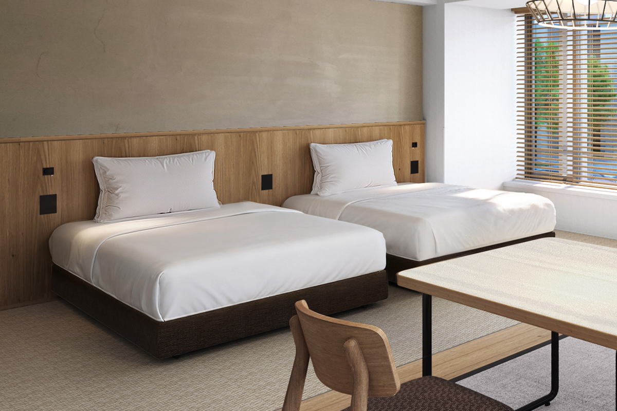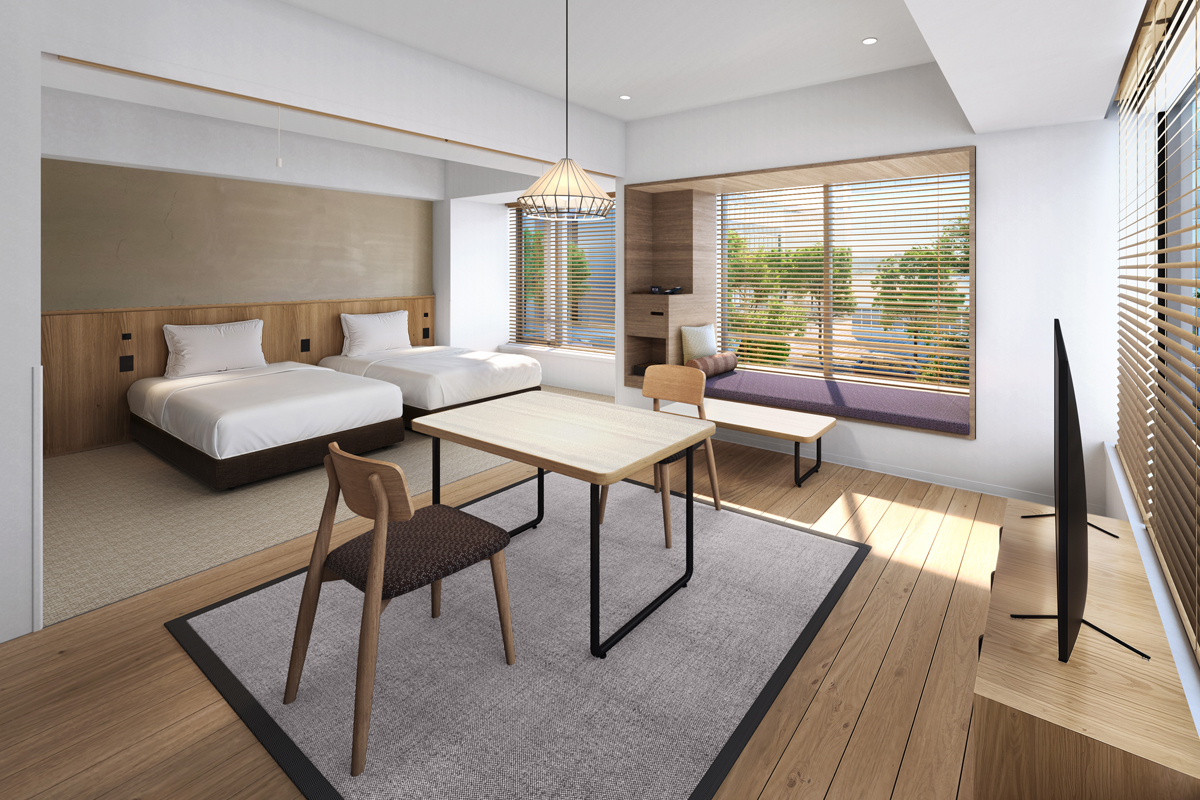 | Room features | Kitchenette(no stove), Bath, Shower, Wash basin, Individual air conditioning, Wi-Fi, Washlet bidet toilet, Nihon Bed(luxury hotel bed brand), Microwave, Fridge-freezer, Electric kettle, Phone, Safety box, 50-inch LCD Smart TV, Air purifier with humidifier |
